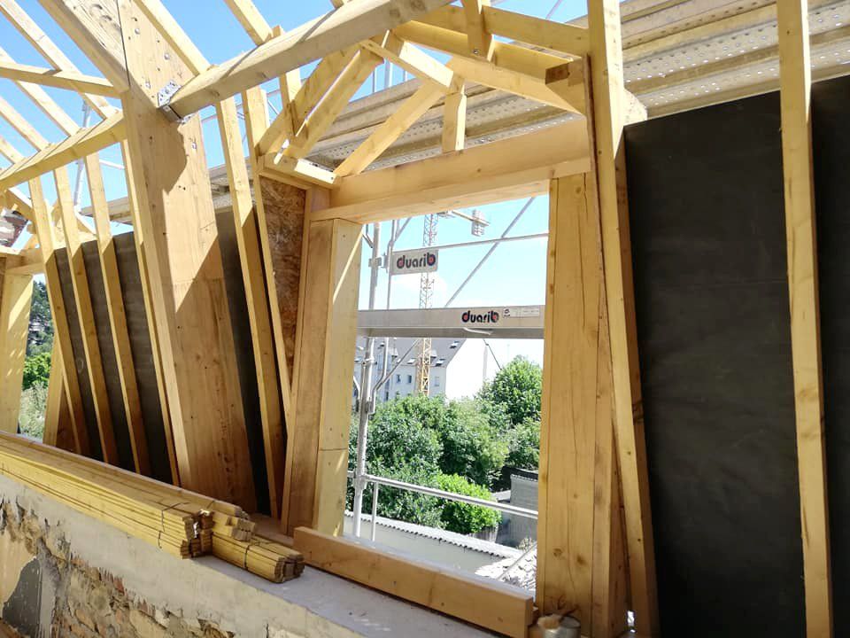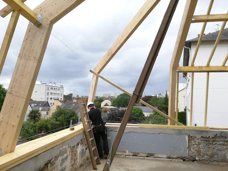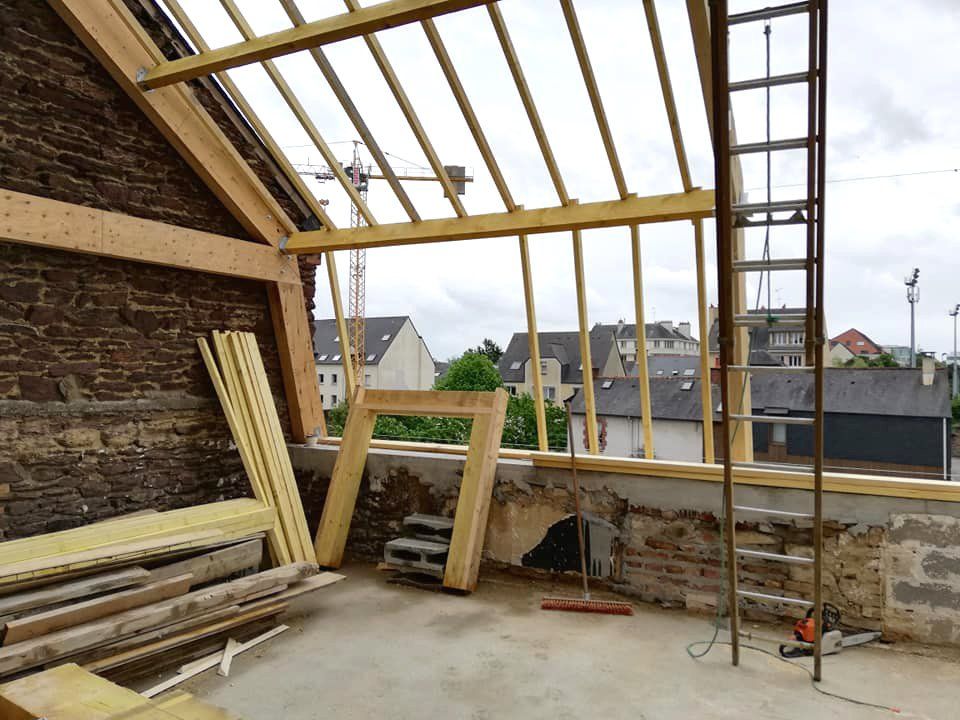 Réalisation de vos projets : tout type de charpente bois, maisons et extensions en ossature bois, bâtiments agricoles et équins, terrasses, préaux, neuf et rénovation.